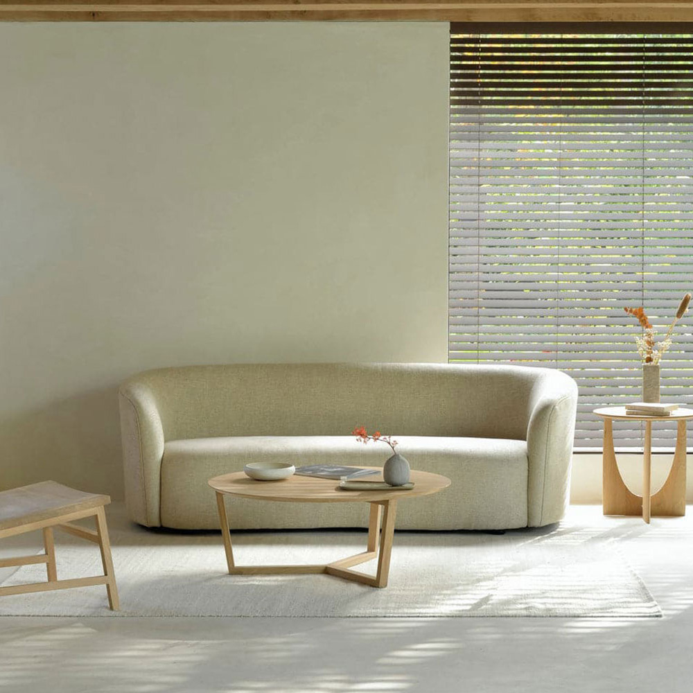 При создании дивана Ellipse дизайнер Жак Денеф задумывался об элегантном изделии с большим количеством посадочных мест. Натуральная ткань соткана исключительно для компании Ethnicraft в Бельгии. Ее покрытие отталкивает пятна.