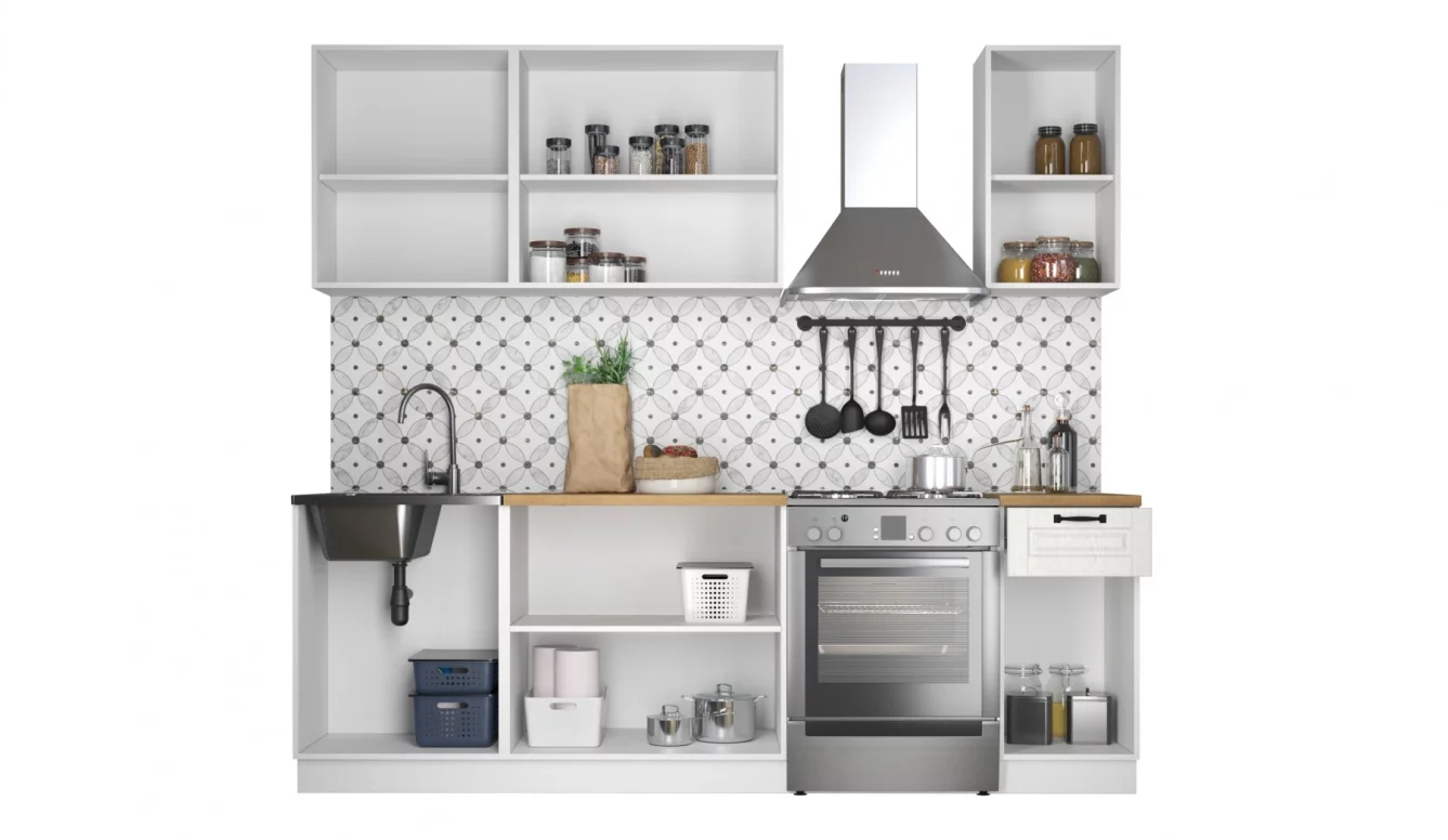 - В гарнитуре оптимальное количество модулей для создания функционального пространства для приготовления пищи.