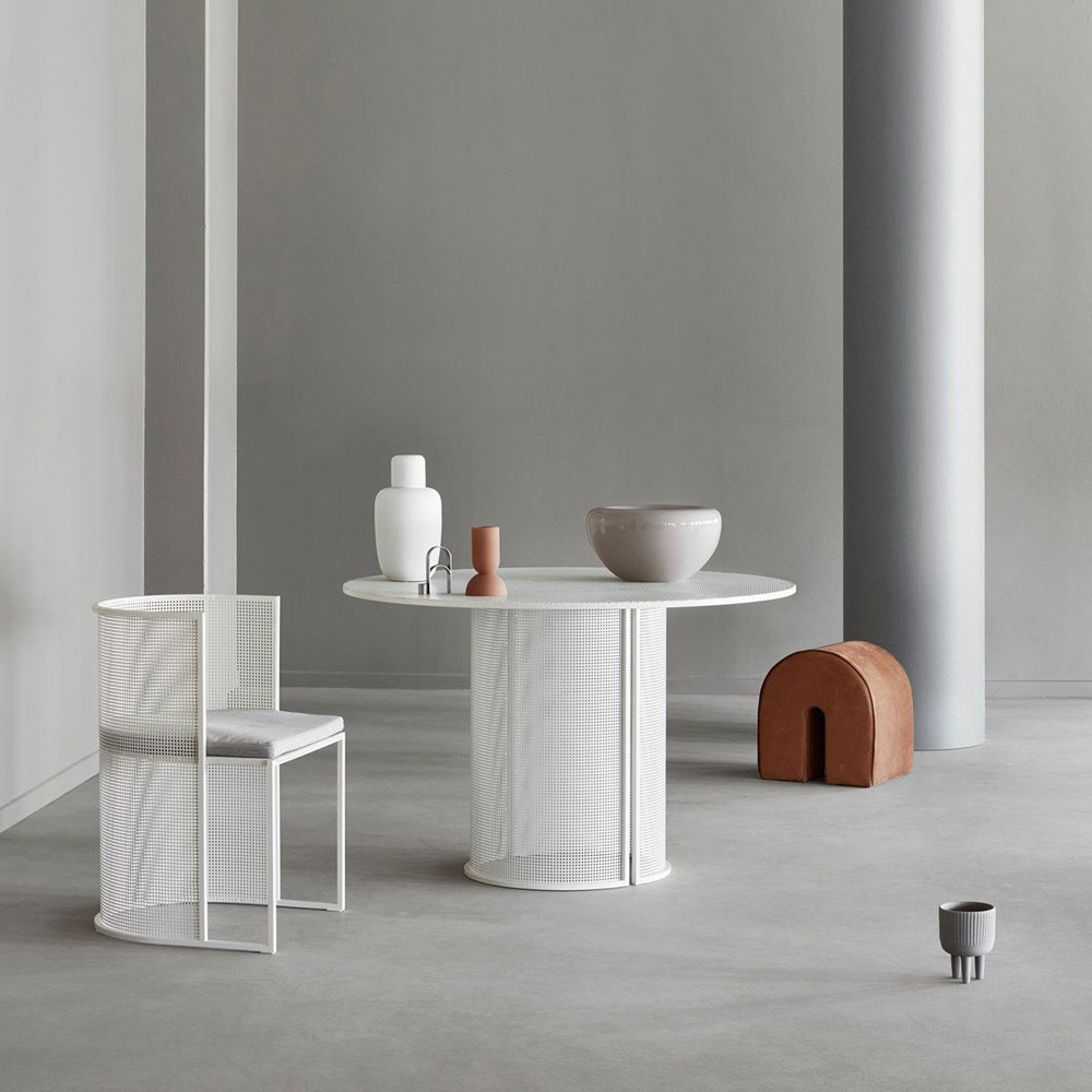 Ножки стола покрыты яркой золотой пудрой в современном стиле, которая дополняет элегантную современную эстетику столешницы из белого искусственного дерева. Его удлиненные линии подчеркивают стиль.